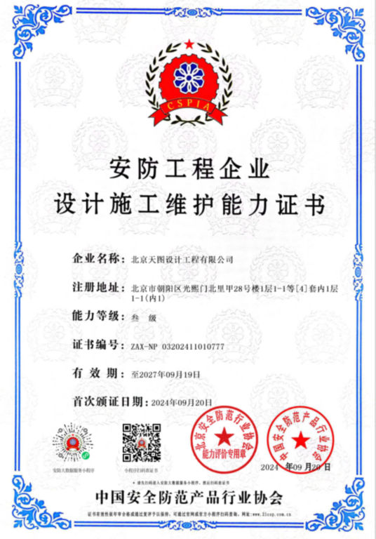 安防工程企业设计施工维护能力证书叁级