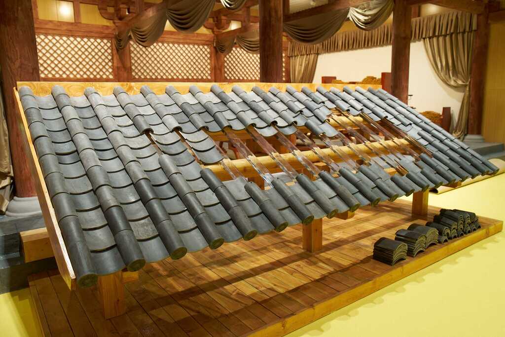 ◭具身体验-屋顶铺设,孩子可在此区域进行瓦片铺设互动,实操中学习秦汉建筑形制与砖瓦铺设工艺。