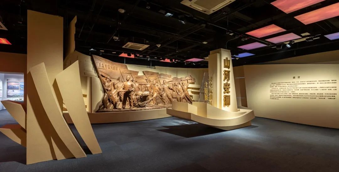 天图集团作为此次项目的设计及施工方,凭借丰富的行业经验和深厚的专业知识,以卓越的设计及施工能力,将65年前淠史杭工程的建设历史呈现于公众眼前。本次“山河安澜——淠史杭灌区主题展”展厅面积约1200平方米,展线长度约240延米,分为“千年夙愿”“百年伟业”“精神丰碑”“时代华章”四个部分,共展出不同时期的照片、图表350余张,不同类型的文物展品300余件套,艺术品创作、场景复原、多媒体视频、沉浸式体验等20余个。