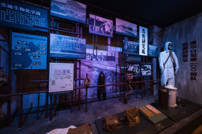 ◮昏暗的灯光下,通过场景艺术化手法再现日军100部队通过化学战、细菌战等毒害中国人民,无声控诉着侵略者违背人道的暴行。