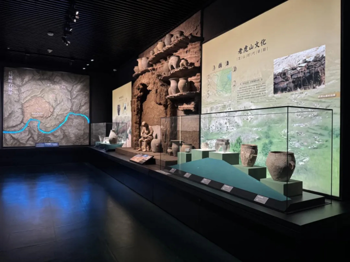 展厅内部,我们布置了大量色彩丰富、设计独特的展柜,这些展柜中陈列着内蒙古地区70年来出土的具有代表性的文物,以及相关的考古学研究成果。这些文物和研究成果不仅揭示了内蒙古地区丰富的历史遗产,也展示了考古学家们在这一领域的辛勤工作和卓越成就。在场景刻画上,复原了金斯泰洞穴生活场景,以及红山文化石冢场景的沉浸式体验,还结合了多个遗址复原模型,采用了通俗易懂、深入浅出的叙述方式,旨在全面、系统地向观众呈现内蒙古地区从石器时代至夏商周时期在中国文明起源和发展中所扮演的关键角色和作出的重要贡献。