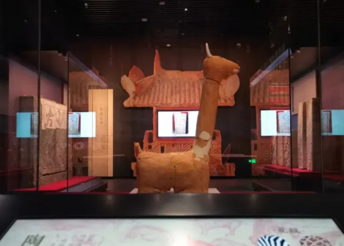 设计精准把握襄阳历史无缺环且各时期文物资源丰富这一独特优势,坚持以重点展品为核心、主辅分明、贯穿展览的文物轴线,既营造文物舒适的微环境,又营造文化氛围浓厚的整体场域环境,建构展品叙事表达的元域场空间。通过设计独立展柜进行重点展示,设计超大尺度展柜装置,实现相关文物阵列化、组团式的集中呈现,同时利用科技手段对文物进行活化,打造恢弘大气的器物空间,将馆藏特色文物更多、更精彩地呈现给观众。