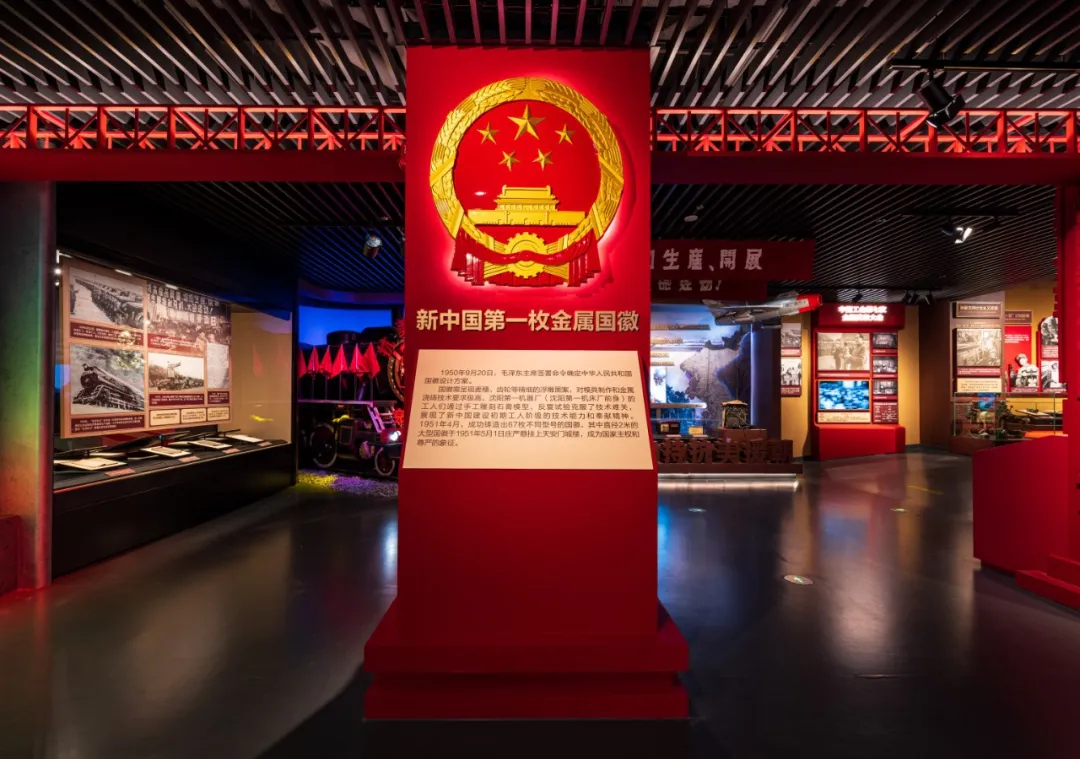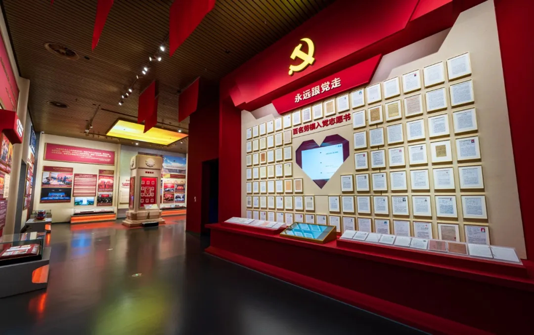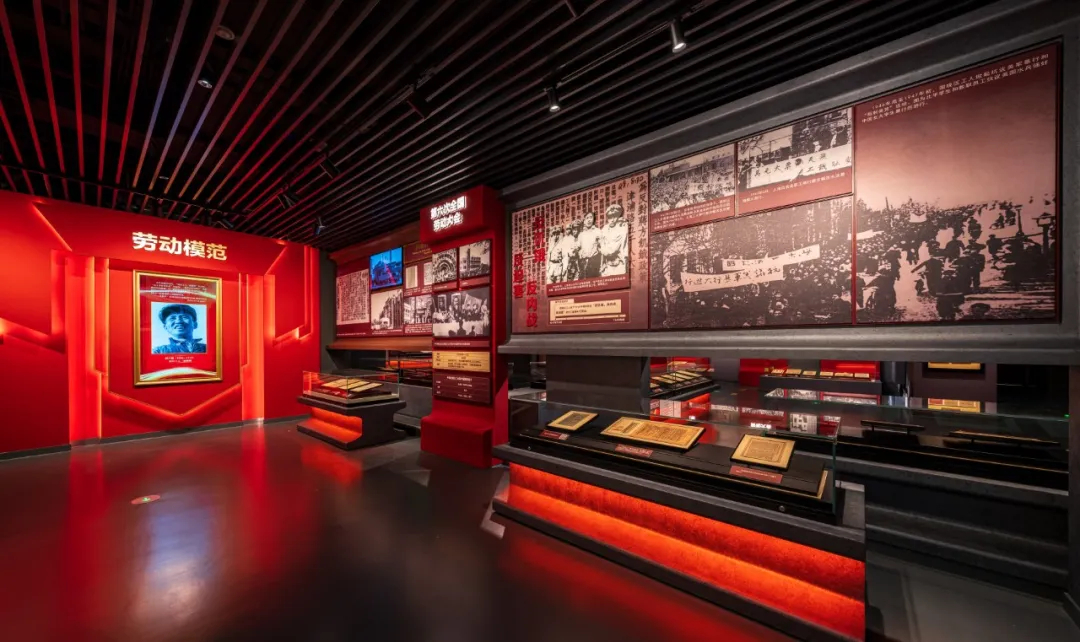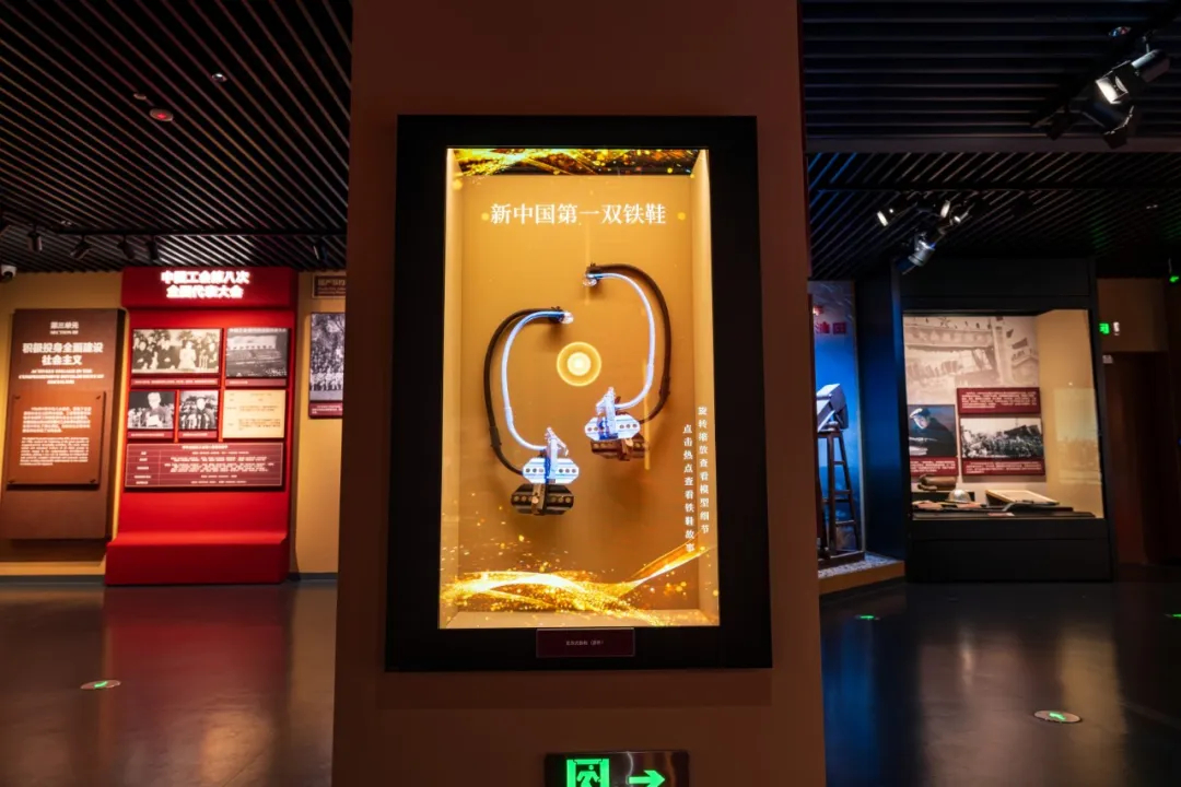△展柜及展墙设计以“工字钢”为元素,凸显工人阶级坚砺本色