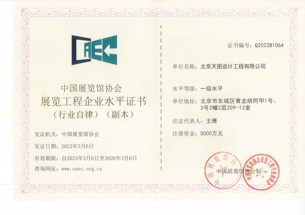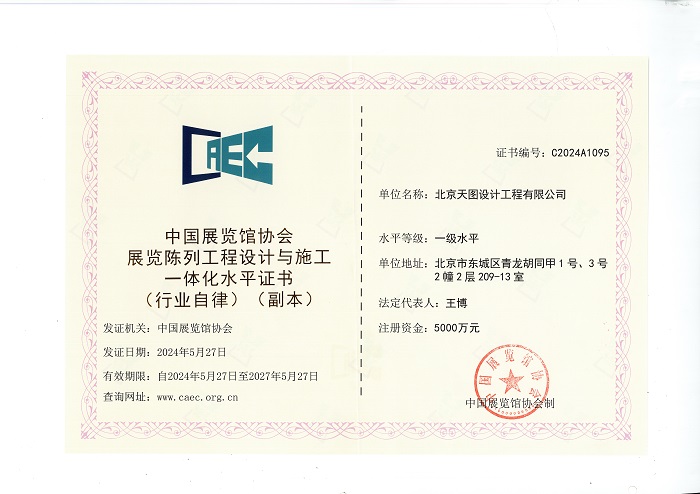 中国展览馆协会展览陈列工程设计与施工一体化一级资质