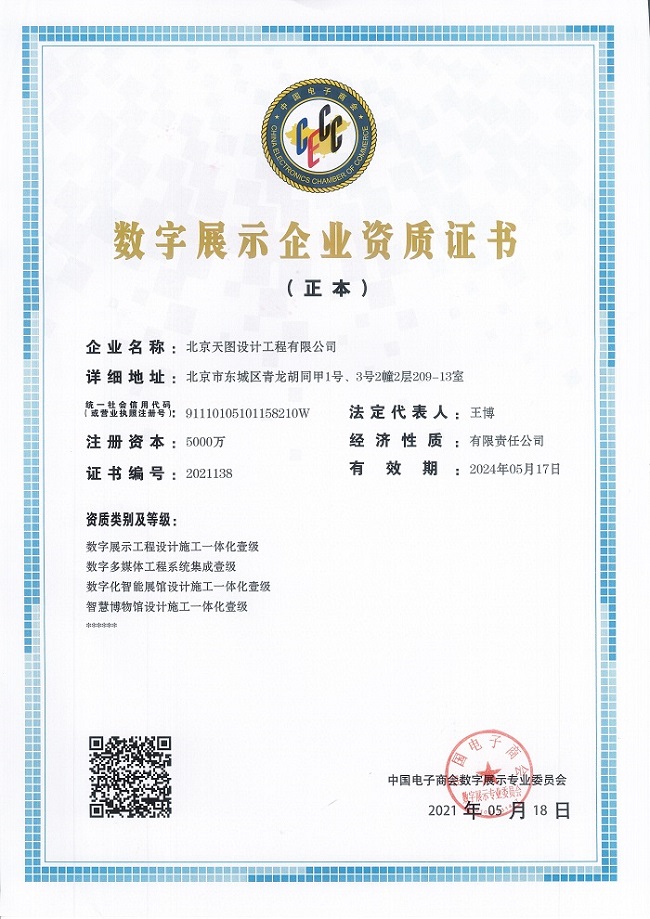 数字展示企业资质证书