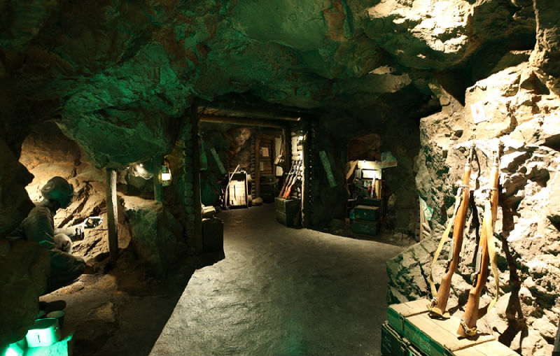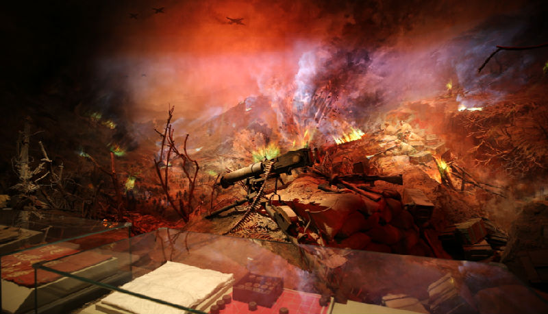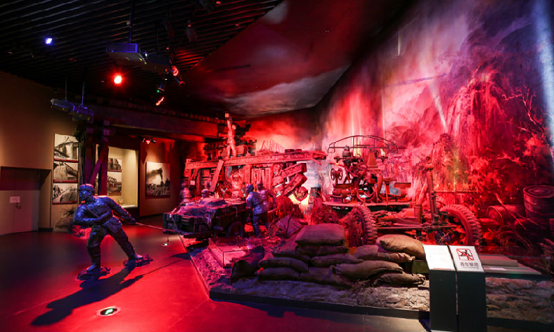 体验式呈现——步入式体验,观众能够参与其中感受坑道作战的真实状态,与历史人物共同感受作战的激烈、战争的残酷和战士们在艰苦作战环境下无谓牺牲的乐观主义精神。