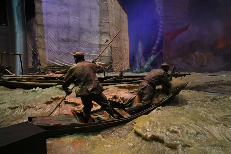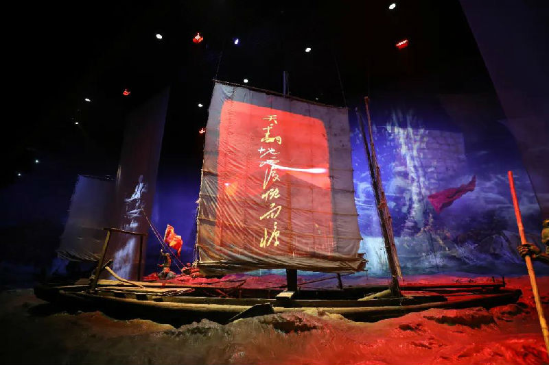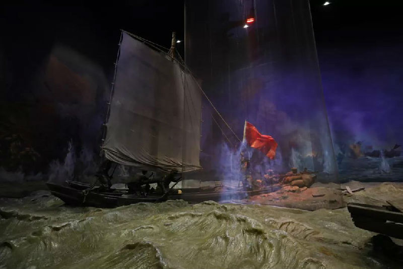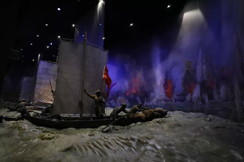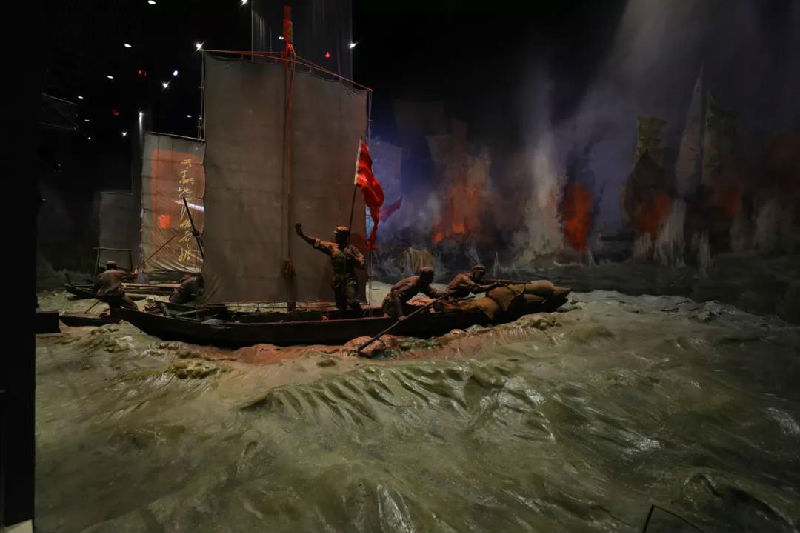 大型沉浸式场景《百万雄师渡大江》,结合珍贵文物、历史影像、历史图片、艺术雕塑和交响乐,史诗般呈现人民解放军百万雄师横渡长江的壮阔场景。