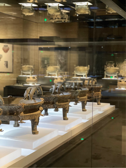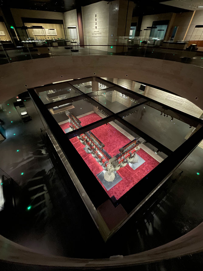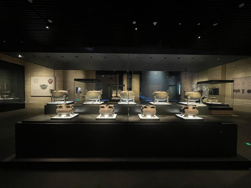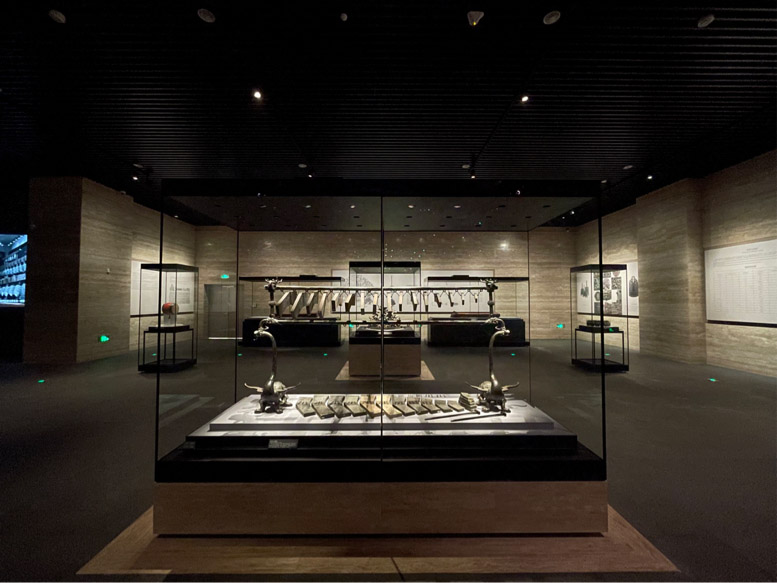 陈列大纲弱化了墓葬特征,文物没有完全依材质进行分类,而以贵族生活的不同角度划分,聚焦于曾侯乙时期的礼乐文明。因此,我们在陈列设计中同样弱化了墓葬特征,展厅内的文物布置突破了单元之间的壁垒和文物之间纯粹的美学关联,从历史的角度和精神的意义中呈现文物共同的文化与历史价值,并以此展现它们共同的礼乐文明背景。总之,我们力图打造一座聚焦礼乐文明、极具历史价值的艺术殿堂,用全新的视角解读历史,以精品工程展传世珍品。