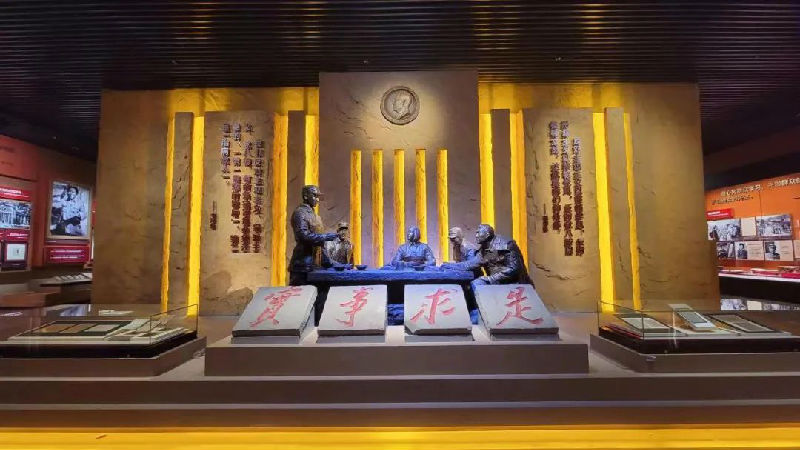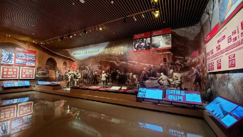 展览以“铭心壮志 塑史铸魂”为设计主题,采用展陈序列化设计理念,以重复、叠加、阵列等方式,强化展览的逻辑性、纪念性、故事性、庄重性。其中人物序列强调“记住”(人民领袖、人民将领、人民群众、人民公仆)、事件序列强调“理解”(对事件过程、意义、价值和精神内涵进行个性化表达),文物序列强调“以物记史”(文物回归事件),精神启示系列强调“认知”(围绕事件设置仪式化精神冥想空间)。总体布局遵循以丰碑式、中心组团式设置仪式感空间,强调雕塑化,梳理观众流线,打开展厅隔墙,采用开放式的空间形式增强展览氛围。让文物与历史事件在空间中融汇重塑、有机结合,再现了中共中央在延安十三年的峥嵘岁月。