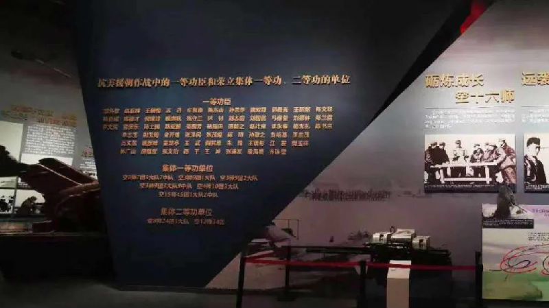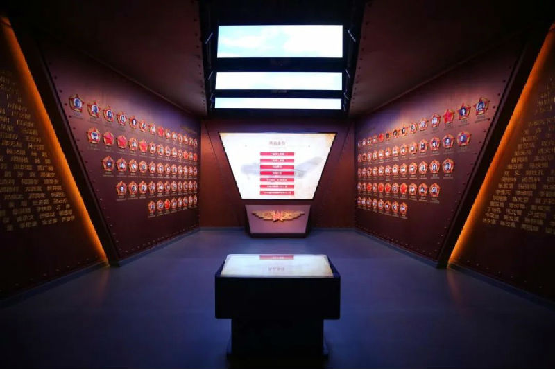 展览中的另一个看点是峰峦险峻的展线结构排布英雄战队,高大伟岸的英雄荣誉墙承载了血与火的洗礼。观众在这里回看英雄记忆,感受志愿军空军不畏艰险,在战火中不断成长,创造伟大战绩的英雄事迹,观众似乎近距离的感受到战场上的硝烟弥漫和战士们的热血沸腾!