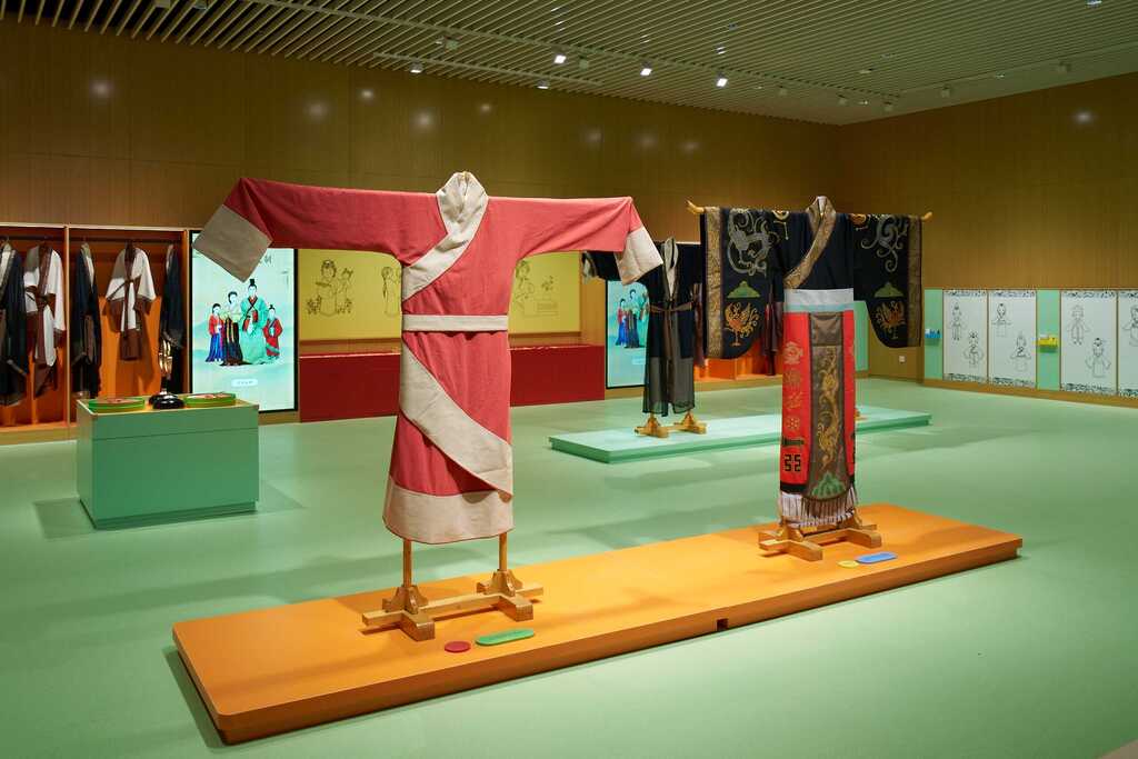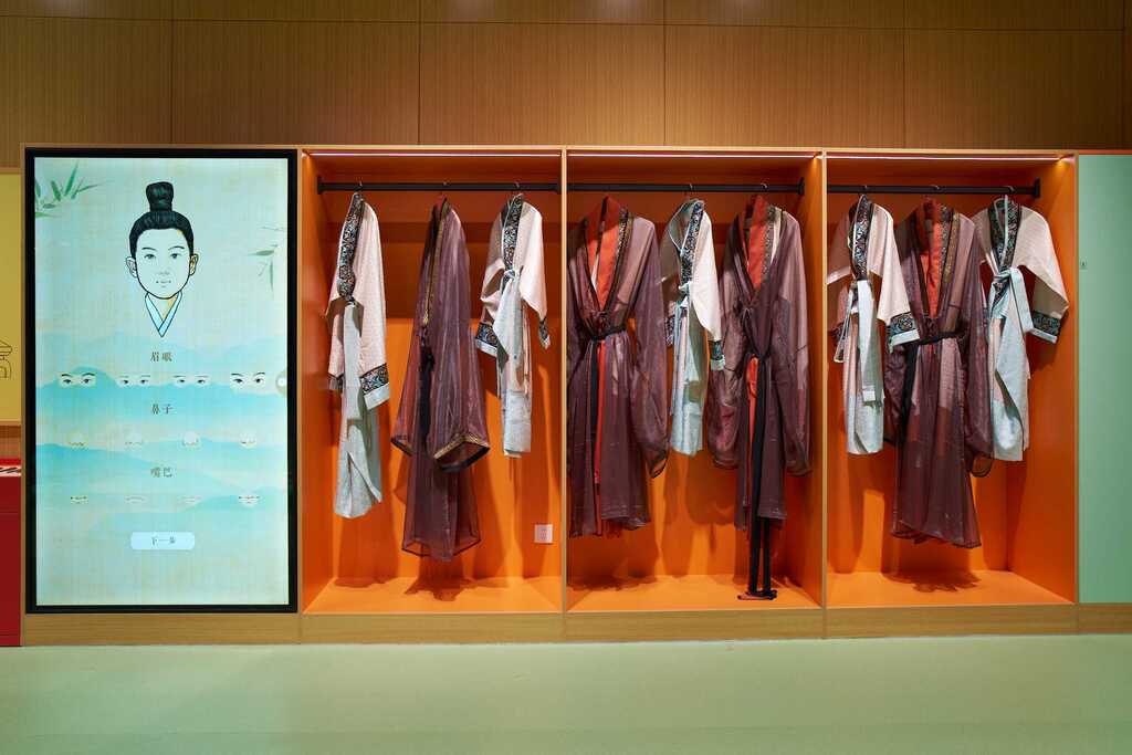 ◭虚拟交互:观众可通过汉服试穿体验、角色定制交互等形式,体验秦汉服饰文化。