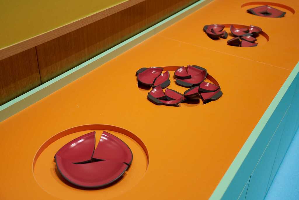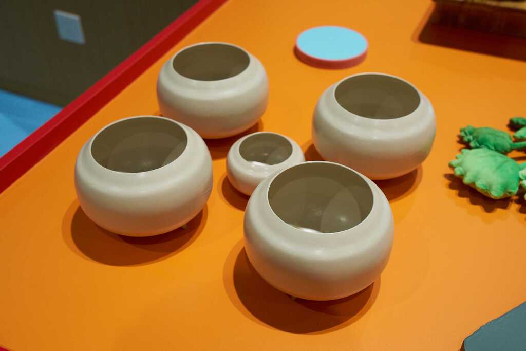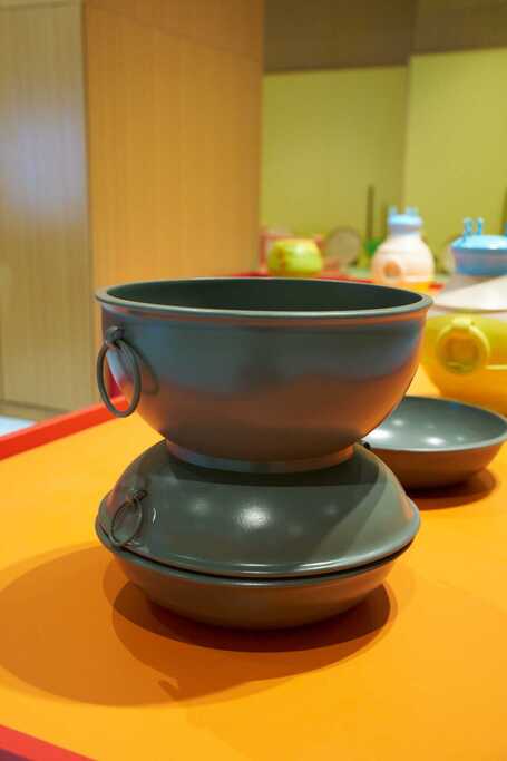 ◭动手互动-餐具拼接,选用秦汉代表性餐具,通过立体拼接,让孩子们直观了解秦汉器型工艺。