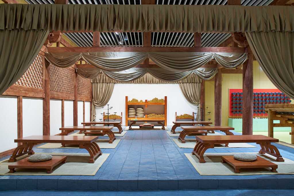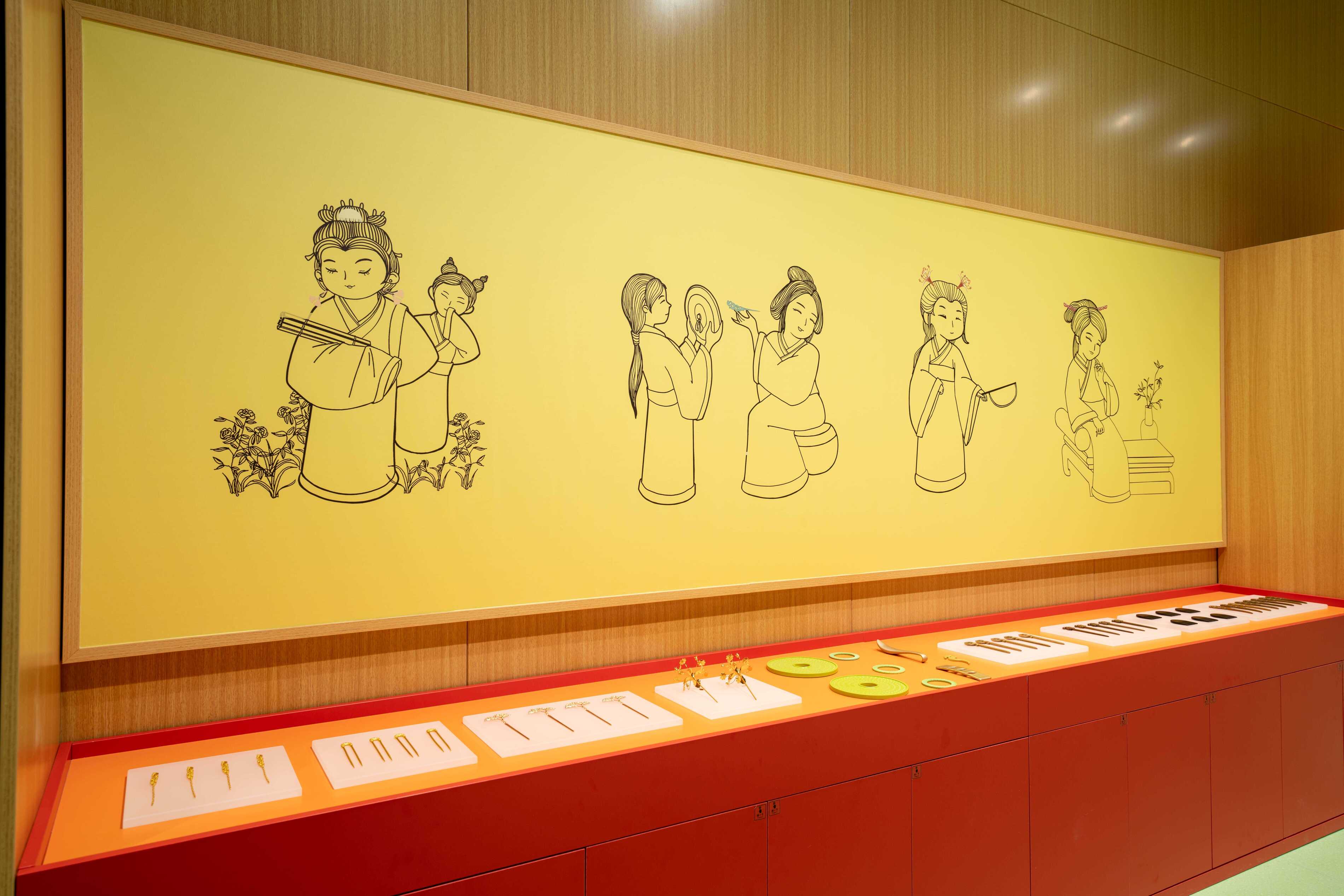 教育活动中心是对秦汉馆系列展陈的延展与补充,整体设计打破传统展陈形式,依托考古发现与历史研究,将“衣食住行”具体知识组团进行物化、转译,形成艺术品陈列、物理互动、多媒体交互、沉浸式体验等多重交互形式。
