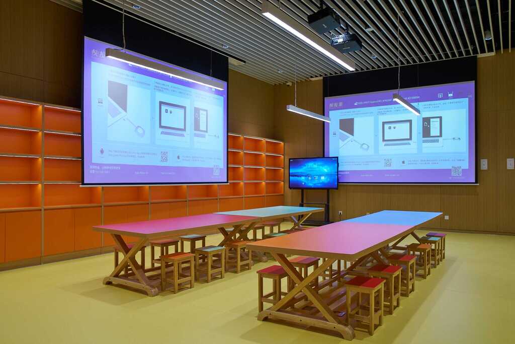 功能齐备的研学教室,孩子们在这里可以进行系统的研学课程学习,亦可参与专题沙龙、主题讲座等活态项目。研学课程开发可链接地区秦汉文化资源,形成全域文教文旅联动效应。
