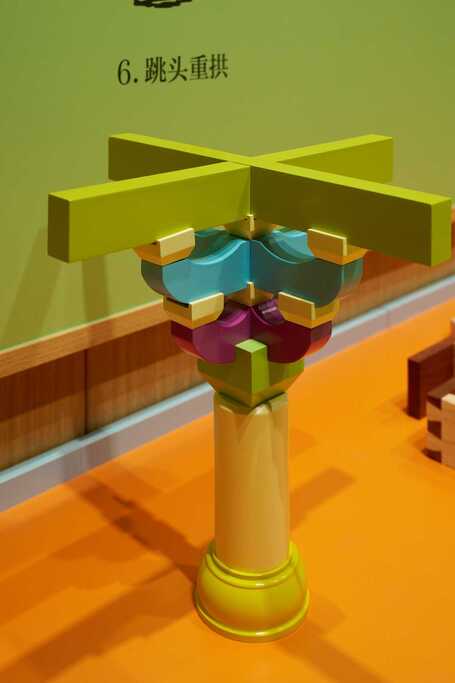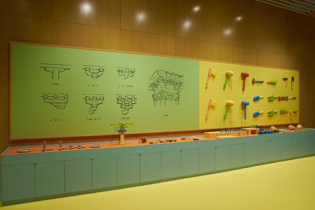 ◭斗拱、榫卯互动,可结合锤、斧、锯等工具模型,组成秦汉建筑互动套组,作为研学教具的开发新方向,与文教文旅联动。