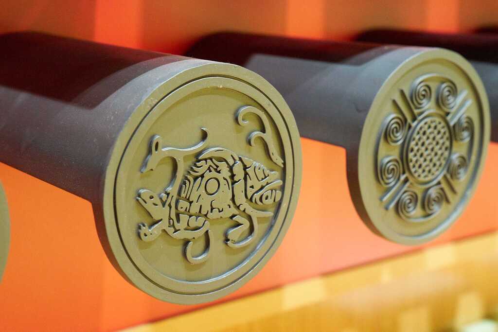 ◭可观可触-特服、动物、农具陈列,选用秦汉“衣食住行”方面代表性文化元素、用具,通过静态复原展示,真实彰显秦汉人文气韵。