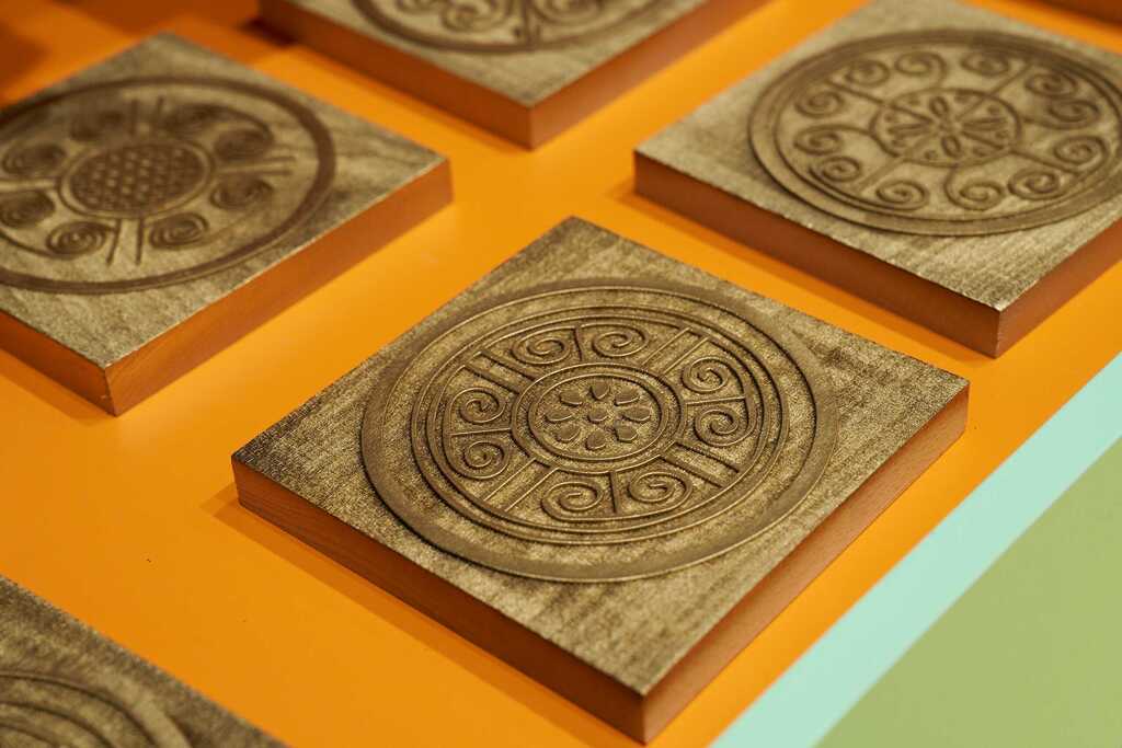 ◭具身体验-屋顶铺设,孩子可在此区域进行瓦片铺设互动,实操中学习秦汉建筑形制与砖瓦铺设工艺。