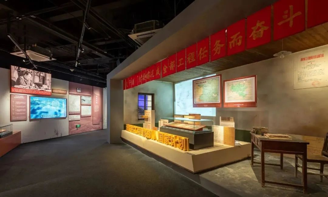 天图集团作为此次项目的设计及施工方,凭借丰富的行业经验和深厚的专业知识,以卓越的设计及施工能力,将65年前淠史杭工程的建设历史呈现于公众眼前。本次“山河安澜——淠史杭灌区主题展”展厅面积约1200平方米,展线长度约240延米,分为“千年夙愿”“百年伟业”“精神丰碑”“时代华章”四个部分,共展出不同时期的照片、图表350余张,不同类型的文物展品300余件套,艺术品创作、场景复原、多媒体视频、沉浸式体验等20余个。