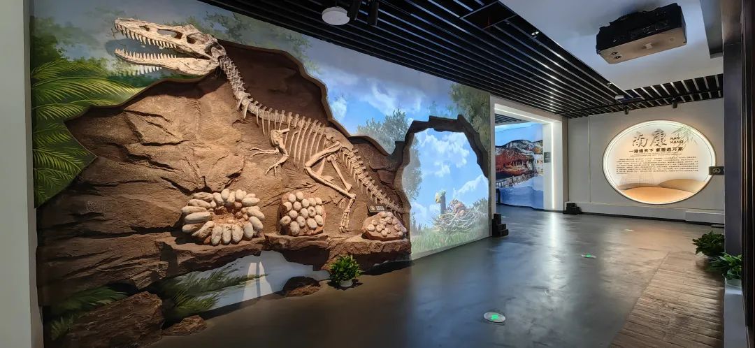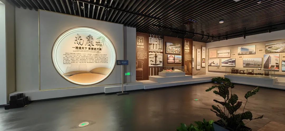 南康—港通天下 家居进万家,空间整体运用了木色,白色着重打造新中式空间氛围,着重表现家居、陆港、恐龙之乡。通过平面版式与展品相结合,详细介绍南康的家具产业发展与繁荣。