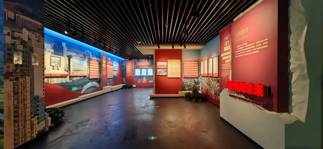 进入主展厅“赣州——今朝更好看”,色彩运用由古朴至现代进行潜移默化的转变,随着参观者的脚步穿越时空,从历史走进新时代,凸显赣州历史文化底蕴的同时,描述赣州从古(岭北首郡)到今的历史叙事,展现在中国共产党带领下,赣州人民风雨同舟、大胆改革、不忘初心,抒写了赣州发展的天翻地覆的巨变,展示了“客家摇篮、红色故都”的深厚文化底蕴和未来发展的宏伟前景。