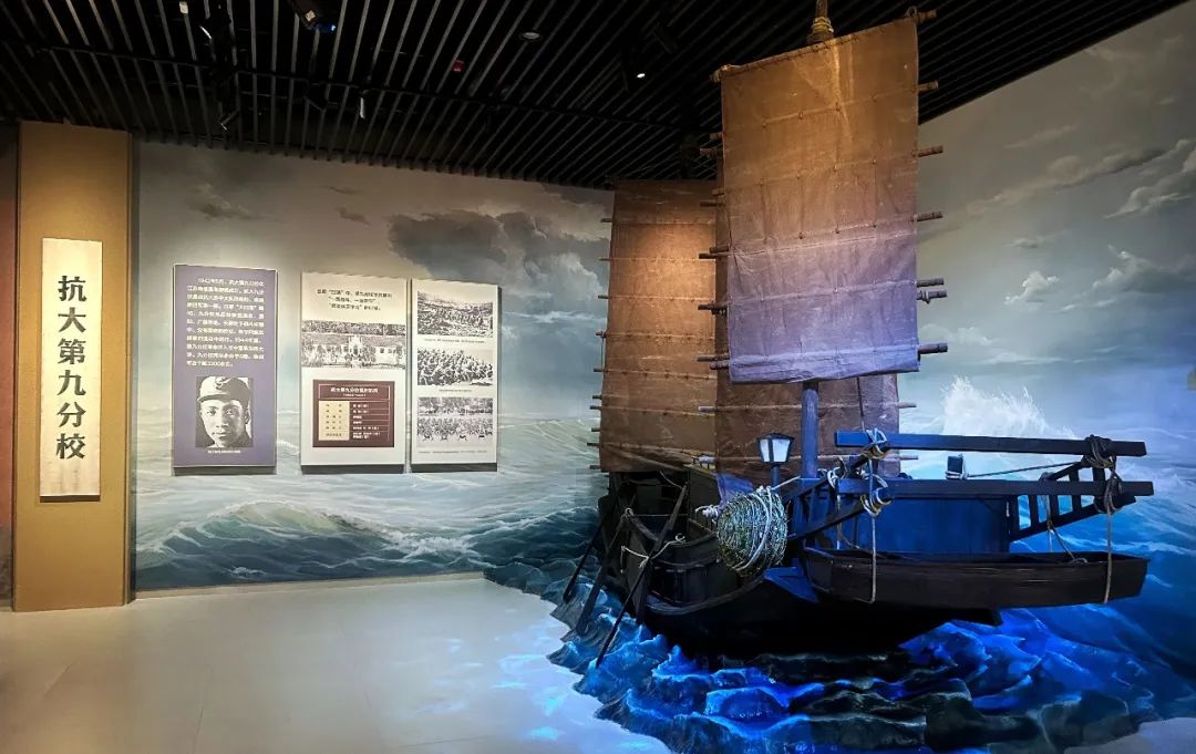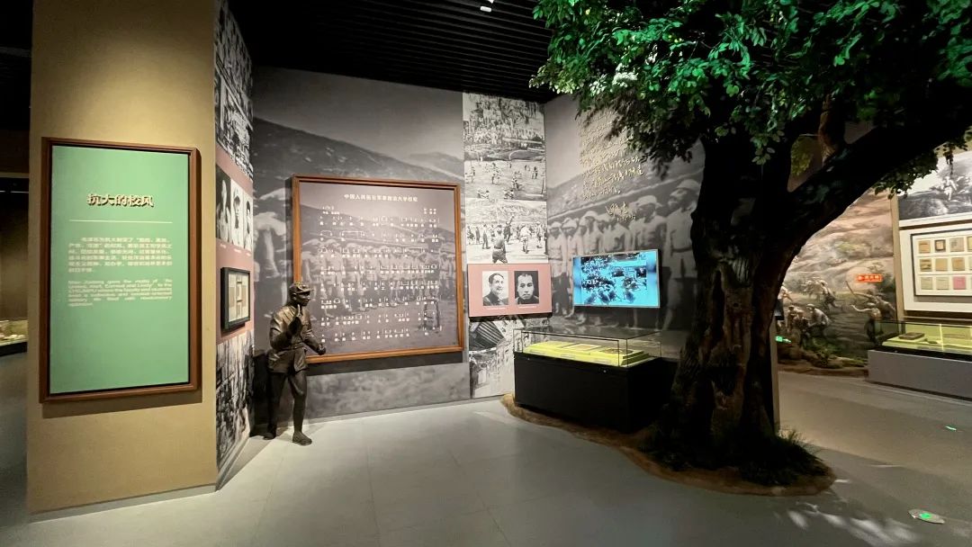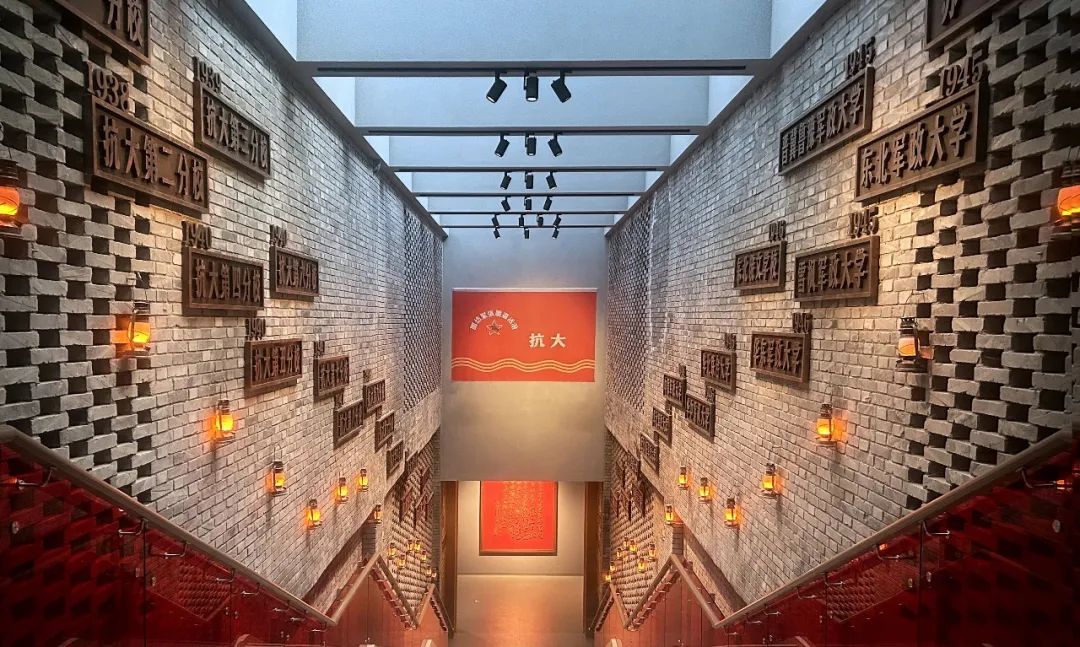 对抗大精神进行重点突出设计,强调从抗大教育方针到新时代军事教育方针,不变的是传承与坚守,变化的是创新与发展;在展厅的过渡空间进行延续革命星火、照亮真理方向的氛围营造,引导观众参观情绪的连续性,彰显精神信念的薪火传承;缅怀厅的多媒体编织花环和创新长明灯设计,将现代科技用于观众情感、爱国情怀的载体,是纪念馆陈列手段的创新探索;尾厅采用紧密环绕的设计语言,兼具宣誓、仪式活动等功能,突出展现习近平强军思想,强调新时代军事教育方针着眼实现党在新时代的强军目标,是在新的历史条件下对马克思主义军事教育方针的时代化发展,是立足国情实际、把握战争与军事发展规律、顺应时代发展要求,创新发展中国军事教育方针的使命担当。