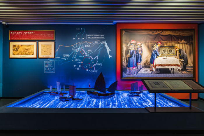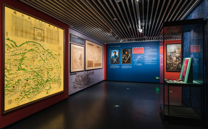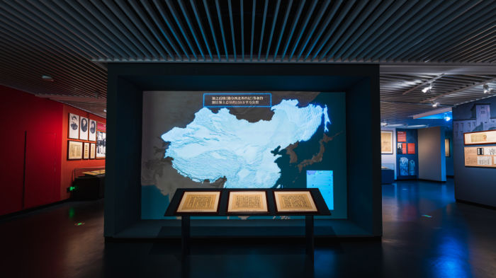 ◮地图作为近代史的重要媒介,我们将一系列不平等条约结合立体沙盘、动态灯箱,直观呈现随时间极具变化的吉林疆域。