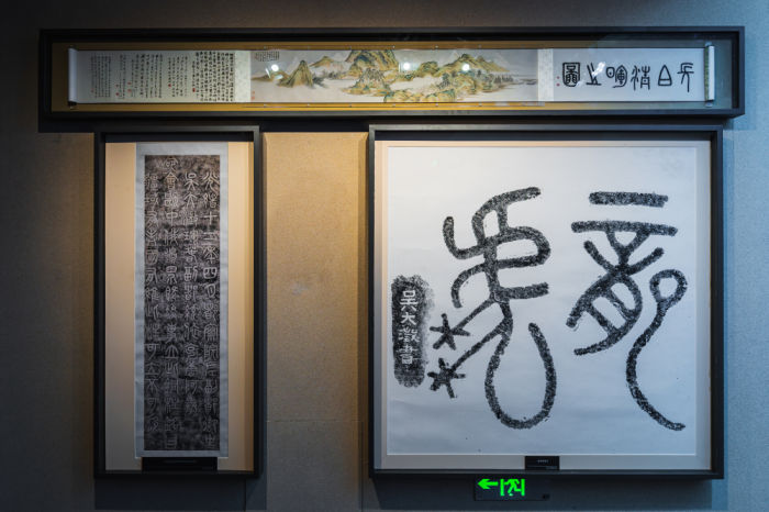 ◮图文展板结合实物及历史场景复原,不仅还原了民族英雄吴大澂坚定保卫边疆的鲜活历史,更让观众抚摸着吴大澂会勘中俄边界铜柱上“疆域有表国有维,此柱可立不可移”的手书时,身临其境感受到他的爱国情怀和坚韧不屈的精神。