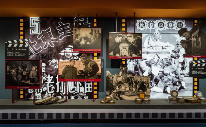 ◮“新中国电影事业的摇篮”展区打造沉浸式观影空间,以灯箱、图文展板、立体化剪影、展品、等形式来展示长春电影制片厂的“七个第一”,搭配老胶片、配音设备等实物,让观众沉浸式感受“新中国电影事业摇篮”的辉煌成就。