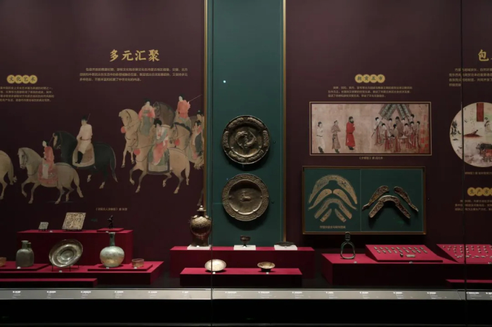 隋唐至宋辽夏金时期:在当前阶段,我们有幸目睹了一系列历史文物的精品,这些珍贵的展品生动地展示了从隋唐时期一直到宋辽夏金时期,内蒙古地区在中国统一多民族国家形成和发展的历程中所扮演的关键角色。一踏入展厅的走廊,参观者便能感受到这个历史时期的氛围,因为这里精心布置了与时代背景相契合的介绍性展项。而当深入展厅内部,更会发现一系列综合性的展项,如四时捺钵综合场景、辽五京地形沙盘,墓室场景复原等,这些展项不仅令人印象深刻,而且富有教育意义。它们生动地再现了古代北方各民族共同开发祖国北部边疆的壮丽画卷,展现了各民族间的交往、交流与交融的丰富历史,从而为中华文明的繁荣和进步做出了不可磨灭的贡献。