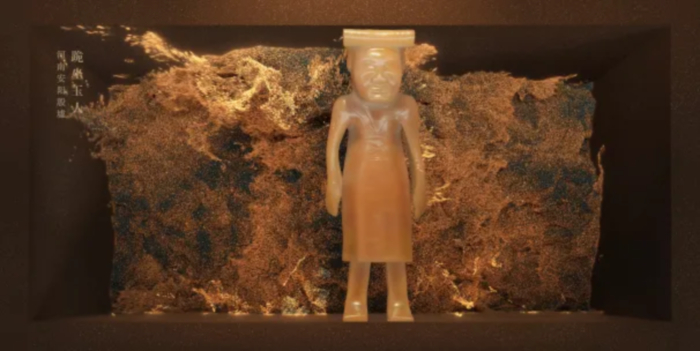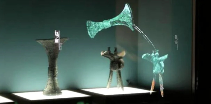 ▲通过裸眼3D技术将跪坐玉人等20多件商代珍贵文物完美呈现,让人们多维度、立体化、沉浸式感受商文明的魅力。