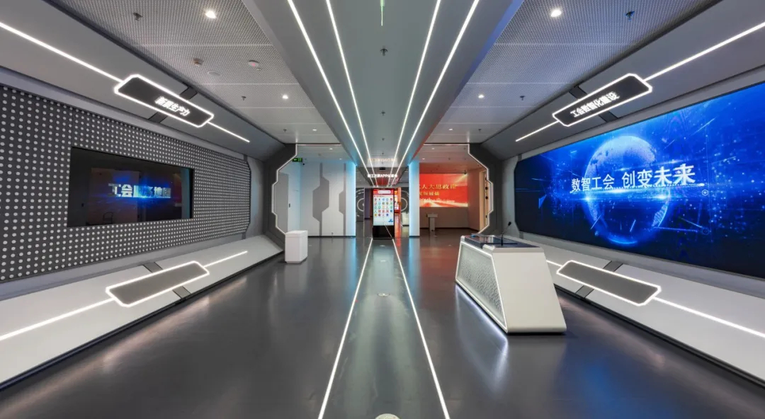 在数智化展厅,观众可近距离体验工会数值化发展成果,感受科技为工会工作带来的革新与活力。