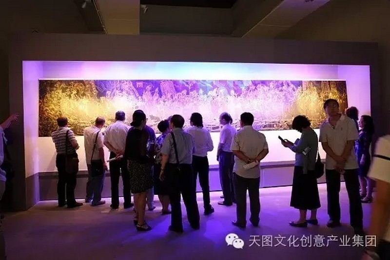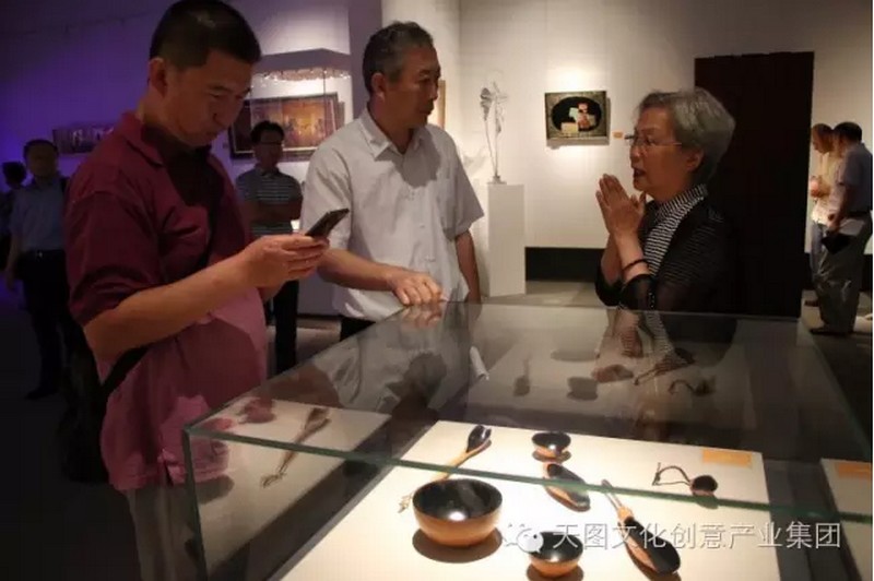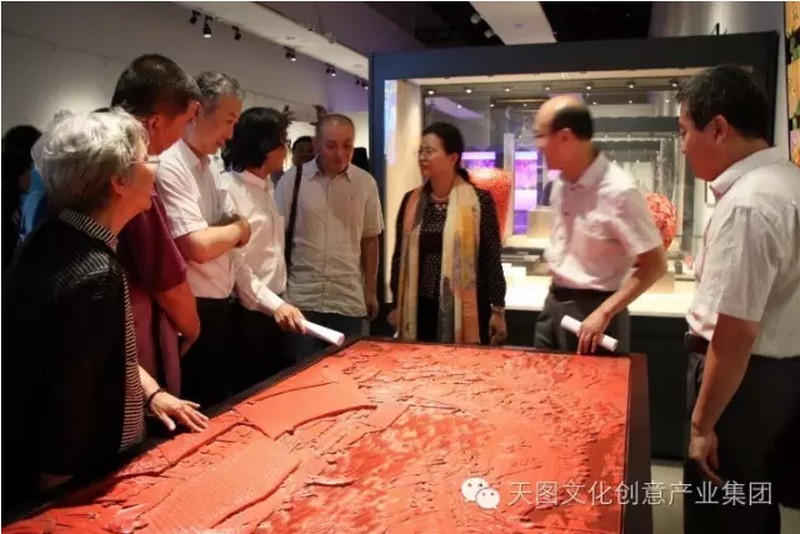与会者参观天图工美艺术展览,他们对天图公司多年来在传统工艺美术的传承应用和行业融合创新方面,取得的实践成果,表示赞赏和认可