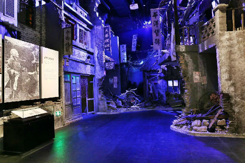 大轰炸场景以进入式的手法和再现性的呈现手段来还原南京被日本帝国主义轰炸过的街景。